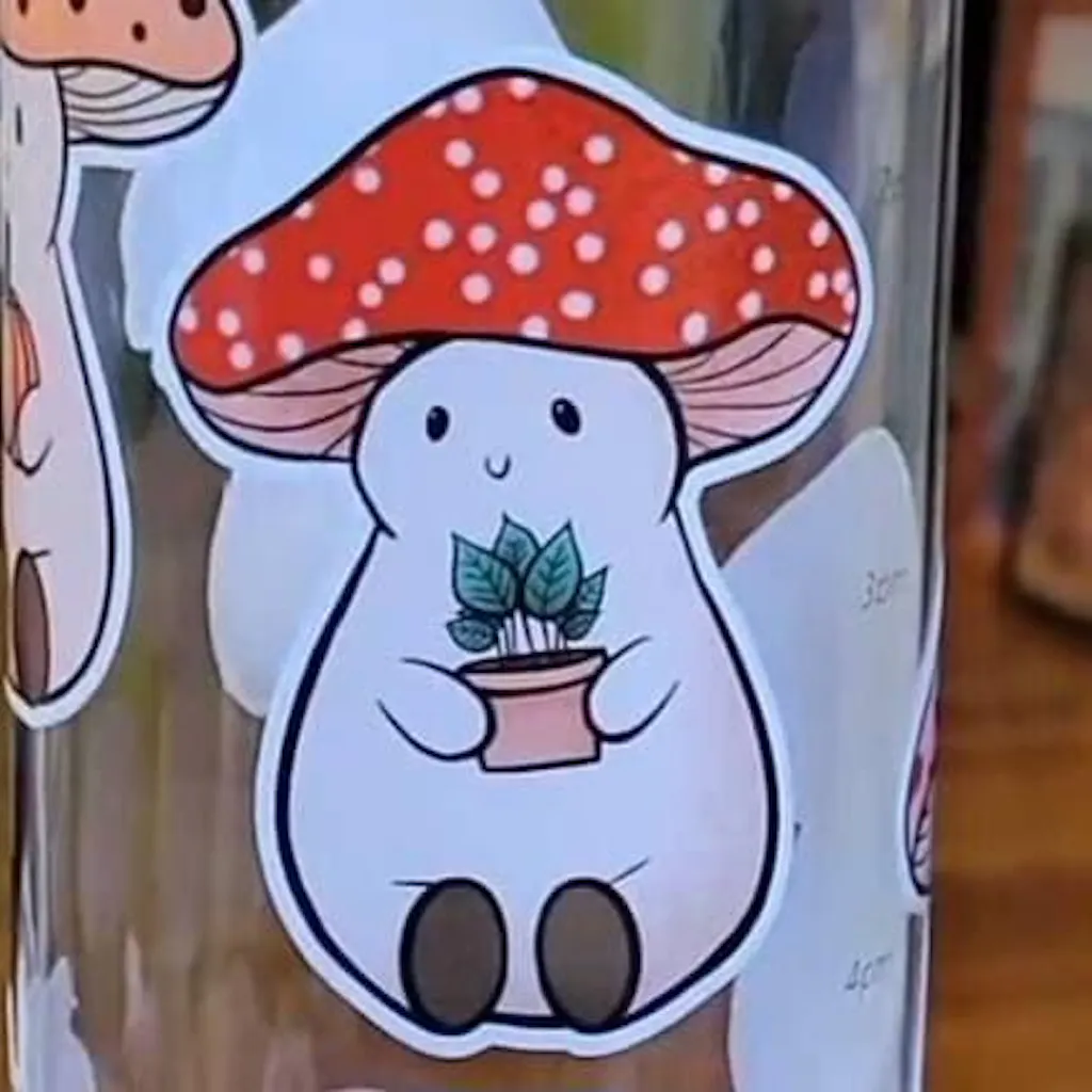 Stoney the Mushroom is a plump, smiling pinky-beige mushroom character with a red mushroom cap with white spots. Stoney is holding a tiny potted plant in his little mushroom arms. Decorate your laptop, water bottle, tablet, notebook, phone, journal, etc... with this plant-loving sticker. They are the perfect gift for your friends, family, or a little treat for yourself!